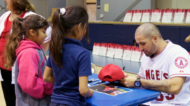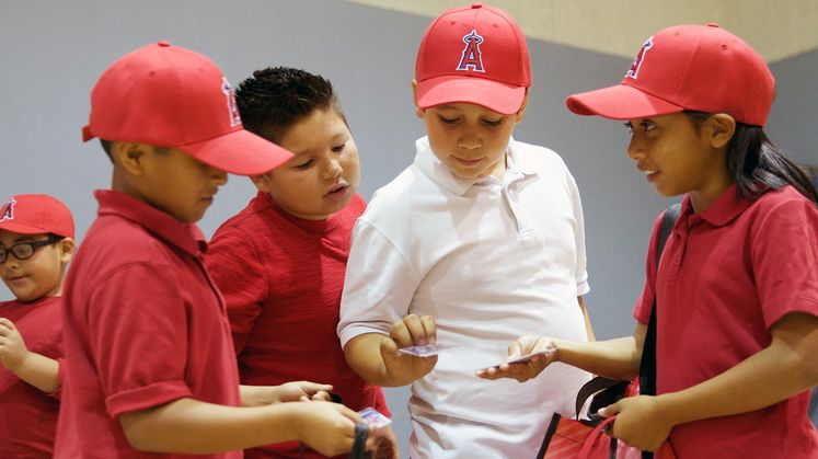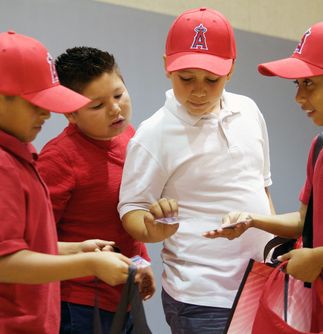 Each of the students received a starter emergency kit filled with a flashlight, mini first-aid kit, electric safety materials and a PrepareSoCal emergency preparedness guide for parents. They also took home an Angels hat, signed by their new friend Hector.