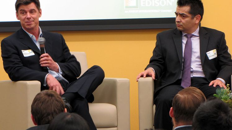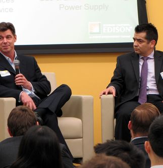 Joe Jankosky, a manager from Strategic Alliances and Partnerships in Customer Service, discussed his background in the energy industry prior to his employment at SCE. Gus Flores, principal manager of Gas & Emissions Trading in Power Supply, shared his movement within the company, including the opportunity to continue his education with support from his managers. Both are graduates of the Marshall School of Business.