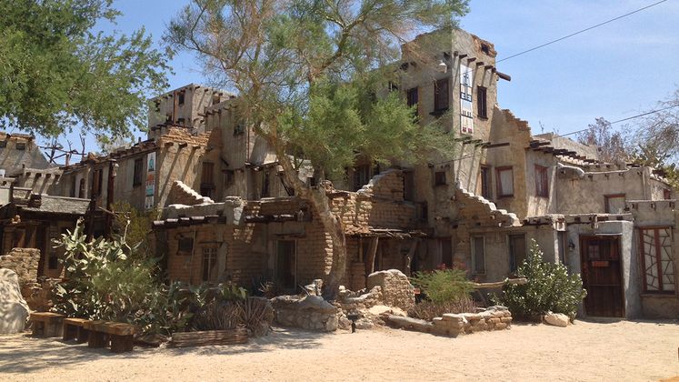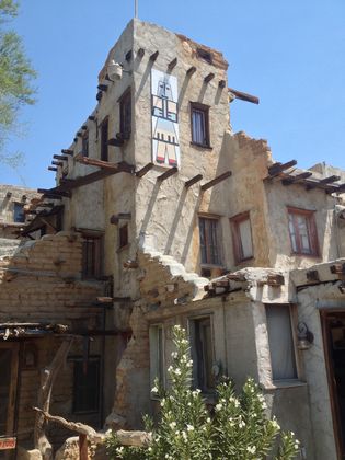 Yerxa built the pueblo himself, almost entirely with recycled materials that he scavenged from the surrounding desert, including pieces of wood, glass and metal from abandoned buildings and former construction sites. Over many years, it grew from a small shack into an enormous, Hopi Indian-inspired structure that served as a museum for desert and Native American artifacts, which continues to this day.