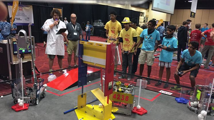 “It was like our creation coming to life,” said team member Anish Neervannan about the three-day competition. “What I enjoyed most about the competition was building and programming the robot, and seeing all of the robot's components come to life on the playing field.”