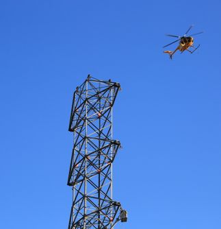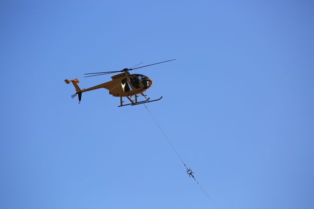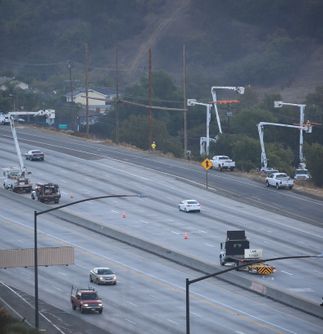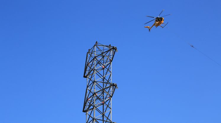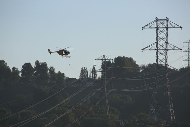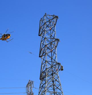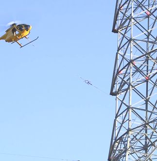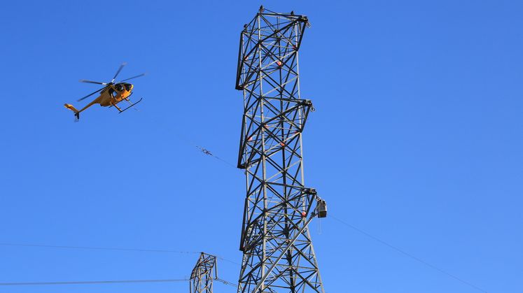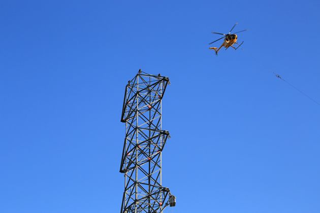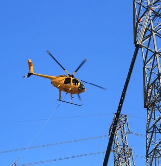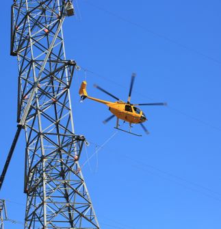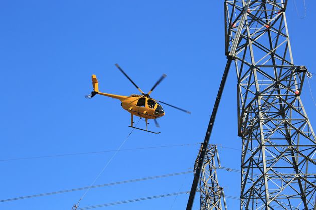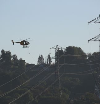 In this video and images, a helicopter pulls two double-circuit, 500-kilovolt lines across the 57 freeway on Nov. 2 in the city of Diamond Bar. The 57 freeway was closed briefly so the work could be completed safely. This work along the 57 freeway will continue for another two weeks.