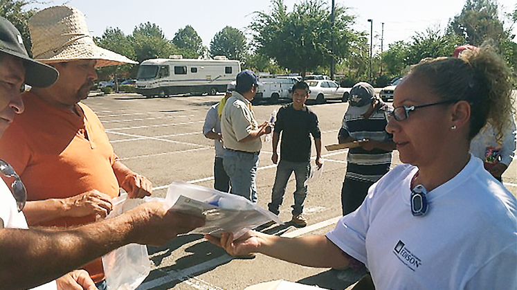 SCE is providing day laborers with an electrical safety kit to help increase safety awareness. The kit includes an electrical safety flyer, a collapsible water bottle and a flashlight. To increase collaboration, SCE and the Pomona center are also doing an opportunity drawing for safety gloves and an electrical tester safety kit.