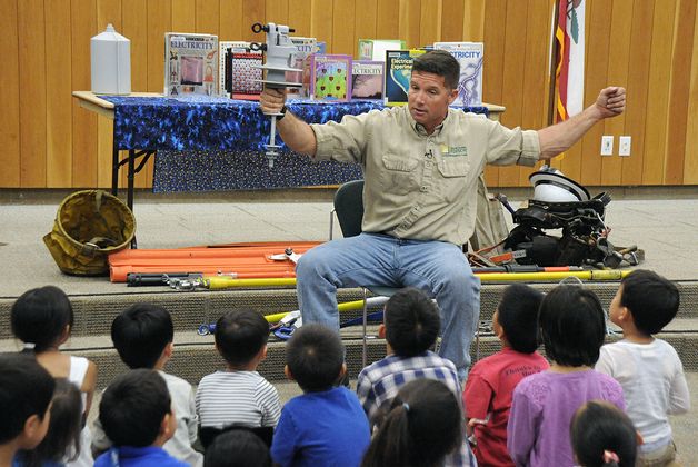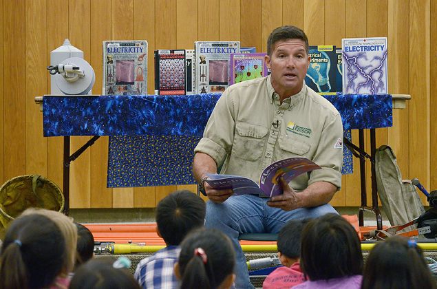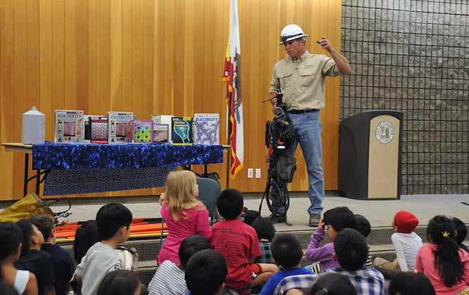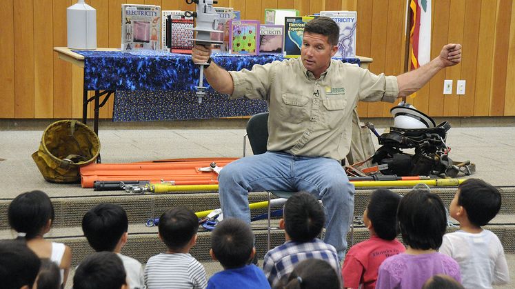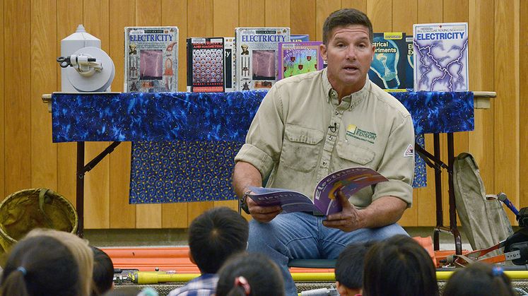 Gallagher recently read “Electricity: Bulbs, Batteries and Sparks” by Darlene R. Stile to children at the Fullerton Public Library as part of SCE’s linemen readings to educate kids about electrical safety. He corrected some misperceptions children have about electricity and reiterated an important message: always respect electricity.