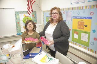 One of the recipients of a new pair of shoes was Serena Rasmussen, a fifth grader at Emerson who loves science and wants to be a veterinarian when she grows up. She received a new pair of hot pink tennis shoes that she is going to wear to school and when she has to go running.