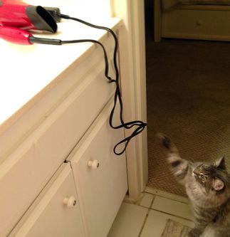 “To a cat, a string dragging across a carpet is the same as an electrical cord,” said Theisen. “Instead, use toys with shorter strings to keep your pet near you and allow you to supervise their play session."