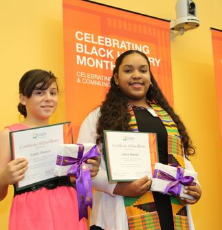 Certificates of excellence were presented to Lluvia Onesto, a student at La Tijera K-8 Academy of Excellence Charter School, and Emily Orozco, a sixth-grader at Davis Middle School in Compton, for their winning art work which focused on “Giving Back.” Each received a Kindle as part of their prize.